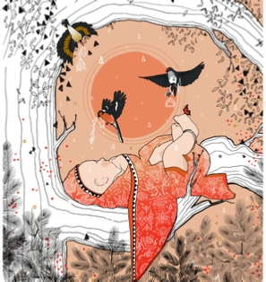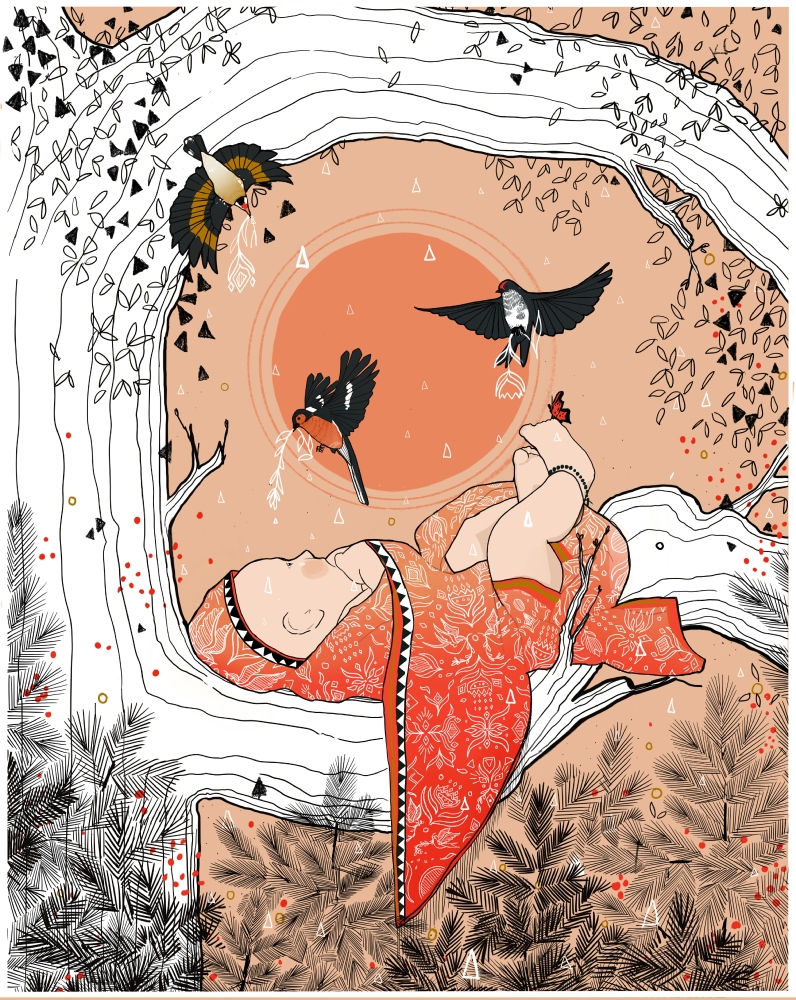 Her art is recognisable for its line work, blocks of colour and female protagonist characters.