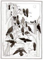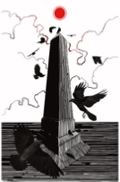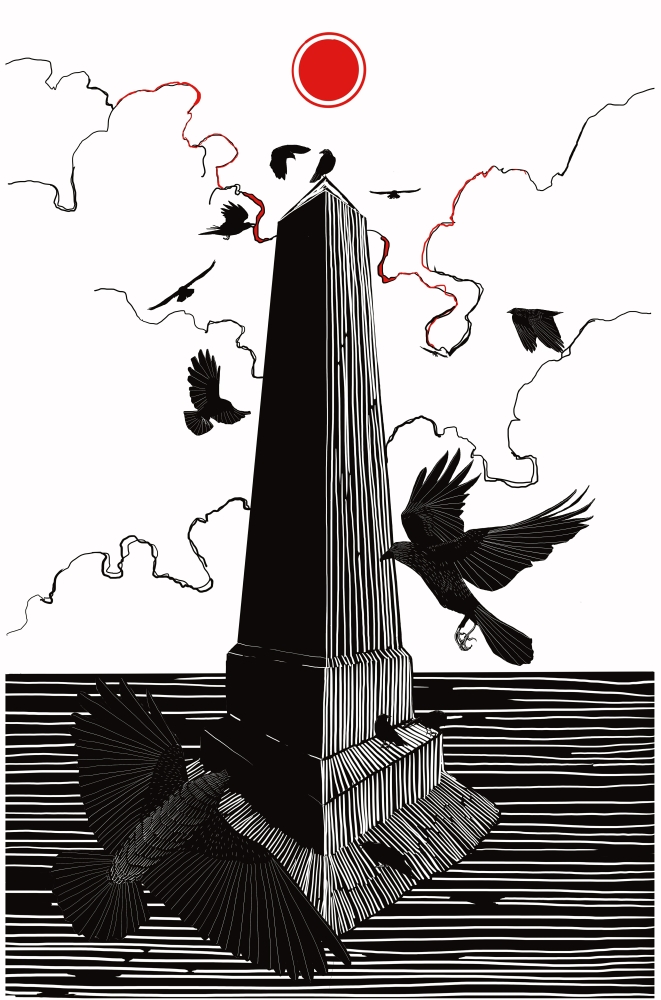 I chose a foreboding, dark feel for the artwork that plays on the crow theme of the local landmark.