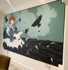 This mural was commissioned by Hopsters bottleshop and bar which is located in the heart of Leigh-on-Sea, Essex. The mural measured around 2m high and 3m long and is situated on the main bar wall. It was created using a mixture of paint and acrylic pens.