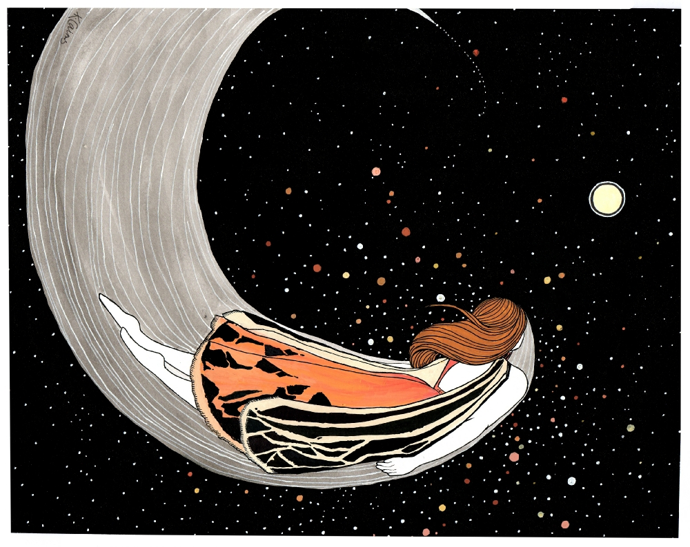 I illustrated this piece of art for L S’s chap book cover: Apple. The story is about a fairy called Apple who is mistreated and struggles to find her purpose in the magical world, surrounded by her many sister fairies who already know their purpose. I wanted the illustration to convey her imprinted trauma that Apple carries with her at all times, souring her once beautiful world and dragging her on a journey of acceptance.