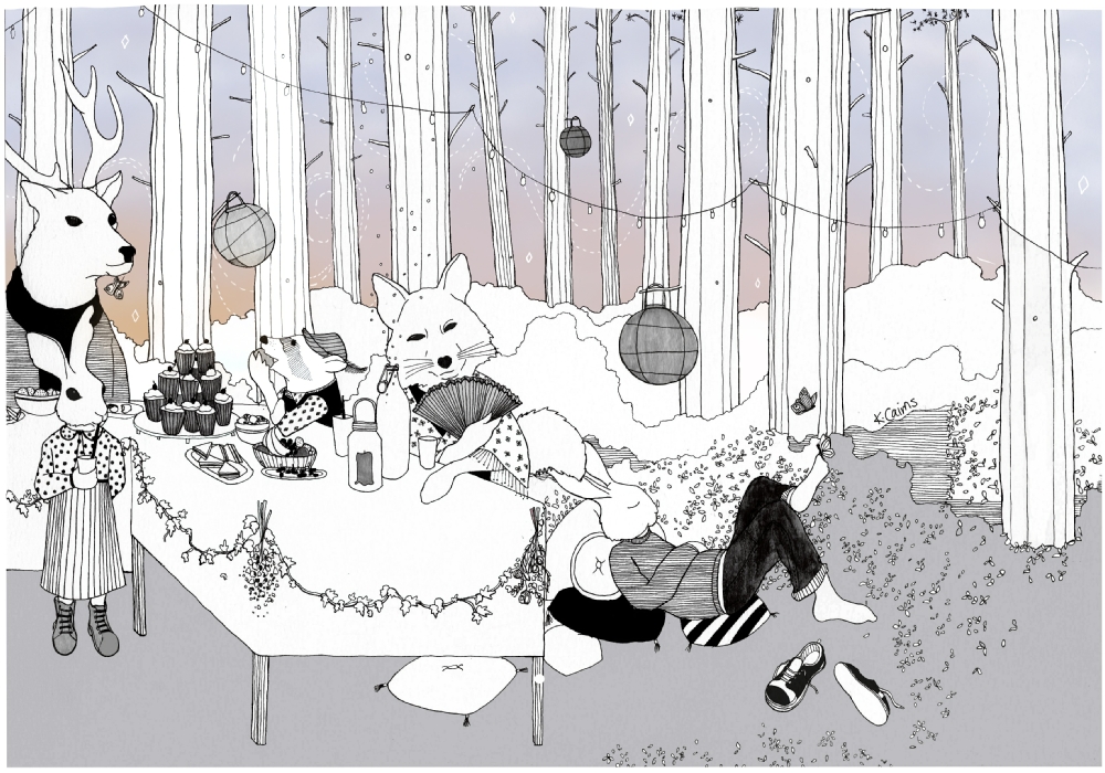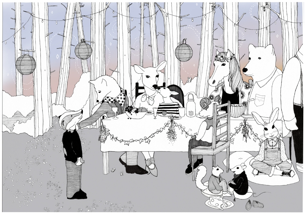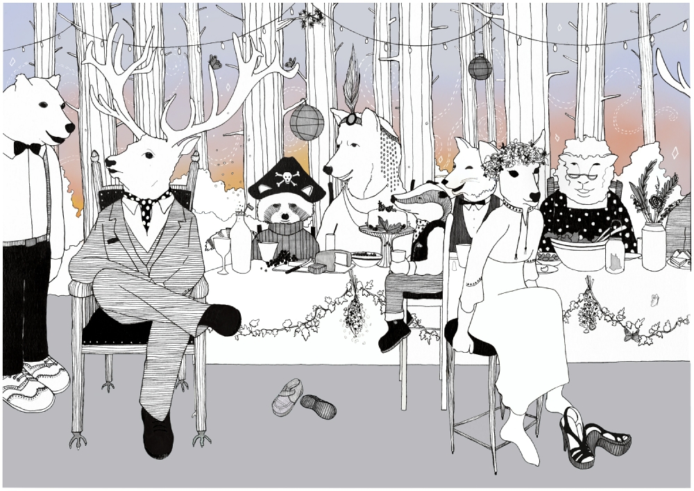 I was commissioned by Iconic design to draw a picnic scene of animals that were all wearing various styles of shoes. This was to be drawn in black and white for iconic to adapt for a shoe shop sign in the Netherlands. Prints that I have added my own colour pops to are available to order too.